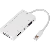 Кабель-переходник для подключения монитора или телевизора с интерфейсами HDMI/DVI/VGA к ноутбуку или видеокарте с выходом Mini DisplayPort. Доступен аудиовыход. Может понадобиться использование внешнего БП, если не хватит мощности, предоставляемой DP портом.