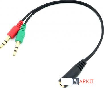 Переходник / адаптер типа miniJack 3.5 мм (мама) - 2x miniJack 3.5 мм (папа) для передачи аудио сигнала.