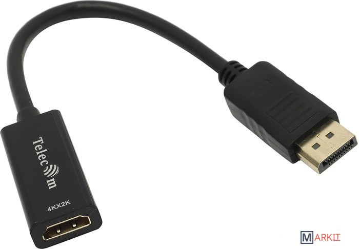 Однонаправленный кабель-переходник для подключения монитора или телевизора с интерфейсом HDMI к ноутбуку или видеокарте с выходом DisplayPort.