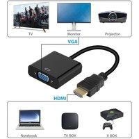 Переходник конвертирует сигнал с видеовыхода HDMI в сигнал VGA, позволяя подключать монитор с кабелем VGA к конвертеру. Дополнительно адаптер имеет выход под звук (3,5mm jack). Переходник HDMI-VGA поддерживает разрешение экрана вплоть до HD качества – 1920×1080 пикс.Переходник / конвертер HDMI – VGA может служить для эмуляции присутствия монитора и позволяет передать высокое разрешение в случае удаленного управления компьютером без монитора, например через программы TeamVewer, Radmin, VNC и т.п. Максимальное разрешении экрана без присутствия монитора 640×480 пикс., максимальное разрешение поддерживаемое данным эмулятором – 1920×1080 пикс. Переходник HDMI-VGA обеспечивает работоспособность компьютера в случае, когда он не запускается без подключения монитора.