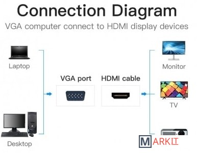 Конвертер преобразует аналоговый VGA видео сигнал, в цифровой HDMI сигнал, плюс аудио. Таким образом вы можете подключить устройства со стандартом VGA, к оборудованию с разъемом HDMI. Конвертер поддерживает технологию Plug and Play, тем самым, не требуя установки дополнительного программного обеспечения и драйверов. При подключении мониторов с большим разрешением, а так же передаче видео сигнала, по средствам кабеля длиной более 3 метров, возможно потребуется использование дополнительного питания, через разъем micro USB