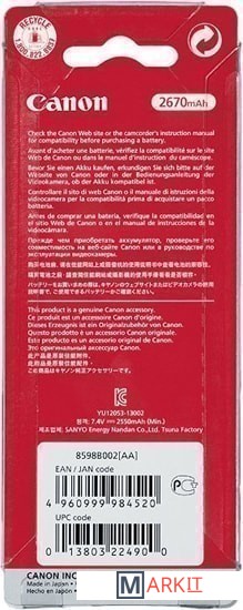 Markit » Аккумуляторы, ЗУ для фото/видеотехники » Аккумулятор Canon BP-828