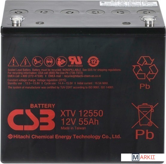 Markit » Аккумуляторы для ИБП » Аккумулятор для ИБП CSB Battery XTV12550 (12В/55 А·ч)