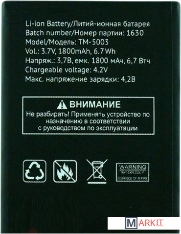 Markit » Аккумуляторы для телефонов » Аккумулятор для телефона TeXet TM-5003