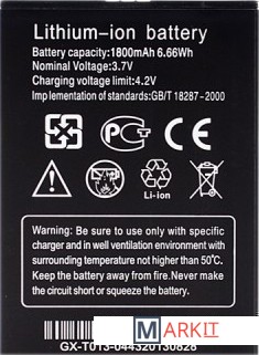 | Емкость аккумулятора | 1 800 мАч |
