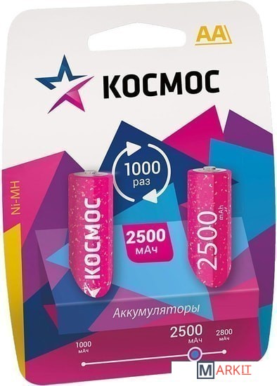 Markit » Батарейки, аккумуляторы, зарядные » Аккумулятор КОСМОС AA 2500mAh 2 шт