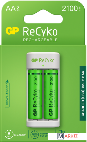 Markit » Батарейки, аккумуляторы, зарядные » Аккумуляторы + зарядное GP E211 + 2x2100mAh AA