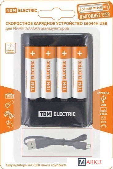 Markit » Батарейки, аккумуляторы, зарядные » Аккумуляторы + зарядное TDM Electric 36044Н SQ1702-0101