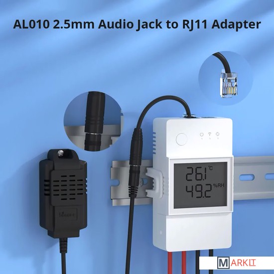 Переходник-адаптер Sonoff AL010. Данный переходник-адаптер необходим для подключения датчиков температуры и влажности к новым моделям - Sonoff TH Origin THR316, Sonoff TH Origin THR320, Sonoff TH Elite THR316D, и/или Sonoff TH Elite THR320D.- Разъем 1: Jack 2.5 мм.;- Разъем 2: RJ9 4P4C;- Длина переходника-адаптера: 10 сантиметров;- Совместимые модели датчиков: Sonoff DS18B20, Sonoff Si7021, Sonoff AM2301, Sonoff MS01;- Совместимые модели интеллектуальных модулей: Sonoff TH Origin THR316, Sonoff TH Origin THR320, Sonoff TH Elite THR316D и/или Sonoff TH Elite THR320D.