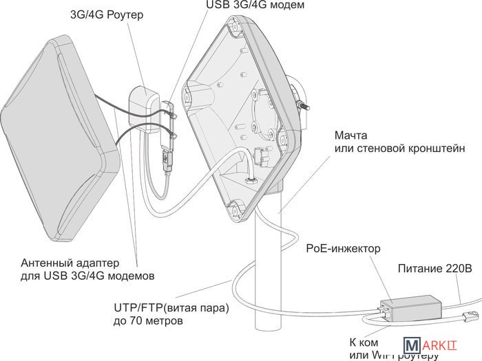 | Коэффициент усиления | 15 dBi (13-15 dbi, в зависимости от выбранной антенны) |