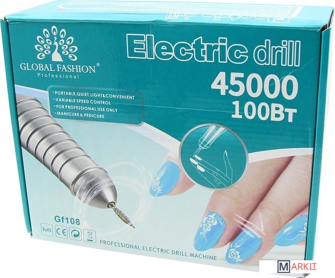 Аппарат для маникюра и педикюра Global Fashion, 45000 оборотов 100W, GF-108-H является профессиональным, предназначен для аппаратного маникюра, педикюра и верхней коррекции искусственных ногтей (гель и акрил). Мощность данного фрезера составляет 100 ватт, а скорость вращения 45.000 об/мин. Особенности данного аппарата для маникюра и педикюра это: плавная регулировка оборотов от очень низких до высоких, изменение направления вращения фрезы, реверс. Функции включения и выключения мотора ножной педалью сделает работу более комфортной. Удобная подставка под ручку. Отверстие на передней панели корпуса - для установки рабочей ручки. Встроенный предохранитель защищает от перегрузок. Аппарат для маникюра и педикюра Global Fashion, имеет лаконичный дизайн, прост в использовании. Характеристики:Название продукта: аппарат для маникюра и педикюра. Мощность: 100 ватт. Скорость вращения: 45.000 об/мин. Работа от сети: напряжение 220-240В 50Гц.