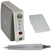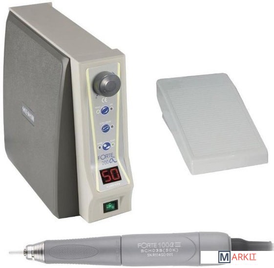Мощный бесщёточный наконечник.Регулировка скорости: вручную, ножное( педаль), коленное (клавиша).Стабилизация крутящего момента.Цифровая индикация скорости вращения.Держатель для наконечника на блоке управления.Индикация кода неисправности.Крутящий момент: 7.8 Нсм.