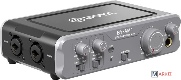 BY-AM1 - двухканальный аудиомикшер, представляет собой компактное решение для микширования звука для устройств с линейным входом 6,35 мм или любых микрофонов XLR (например, BY-M1000/BY-BY-BM58), которое позволяет легко монтировать и контролировать устройства ввода, а также передавать выходной сигнал на компьютер.
