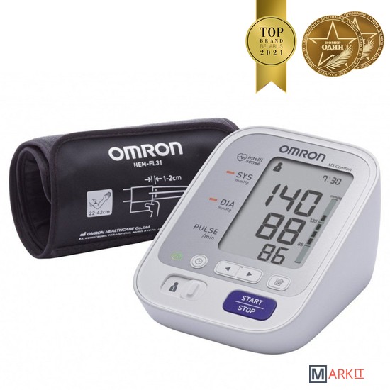 Тонометр OMRON M3 Comfort – японские традиции качества + современные технологии. Модель оправдывает свое название на 100%: комфорт измерения сочетается с точностью и лаконичным дизайном.Основные преимущества:Главная "фишка" OMRON M3 Comfort - интеллектуальная манжета OMRON Intelli Wrap Cuff, внутренняя камера в которой равна длине манжеты. Показатели давления при измерении с помощью манжеты OMRON Intelli Wrap Cuff будут всегда точные, надеть ее неправильно невозможно. Манжета имеет каркас, благодаря этому ее удобно надевать одной рукой на плечо. Размер манжеты универсальный – от 22 до 42 см.Благодаря технологии Intellisense давление измеряется дважды, при накачивании и стравливании воздуха, что обеспечивает высокую точность и защищает от болевых ощущений при перекачивании манжеты.Набор специальных датчиков исключит большинство ошибок при измерении давления (индикатор правильной фиксации манжеты, движения, аритмии и др.).Универсальный индикатор аритмии срабатывает при любых нарушениях ритма.Память на 100 измерений для двух пользователей.Каждый тонометр OMRON в процессе производства трижды проходит контроль точности, что обеспечивает надежную работу прибора