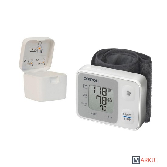 OMRON RS2 - тонометр на запястье без возрастных ограничений и с индикатором аритмии.Основные преимущества:Благодаря запатентованной технологии Intellisense, тонометры на запястье OMRON не имеют возрастных ограничений.Индикатор аритмии сработает при любых нарушениях сердечного ритма.Он идеально подойдет людям, у которых измерение на плече вызывает резкие болезненные ощущения.Легкость и компактность позволяет взять тонометр с собой на работу, на дачу или в путешествие.Подходит для людей с полными руками, когда размер манжеты тонометра на плечо не подходит пациенту.Память на 30 измерений.Футляр для того, чтобы взять тонометр в дорогу.Каждый тонометр OMRON в процессе производства трижды проходит контроль точности, что обеспечивает надежную работу прибора.