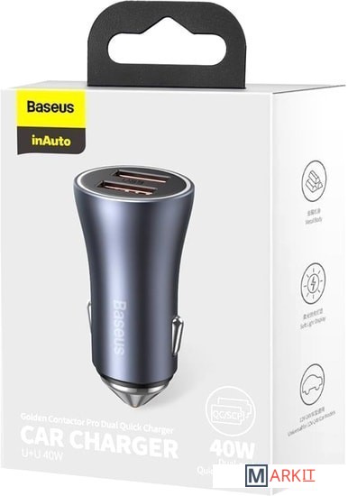 Markit » Зарядные устройства » Автомобильное зарядное Baseus Golden Contactor Pro Dual Quick Charger U+U 40W CGJP020113