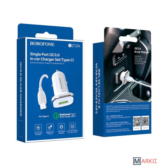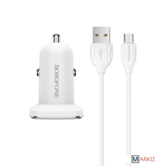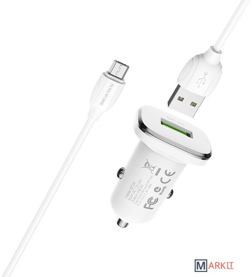 Markit » Зарядные устройства » Автомобильное зарядное Borofone Lasting power QC3.0 BZ12A с кабелем microUSB (белый)