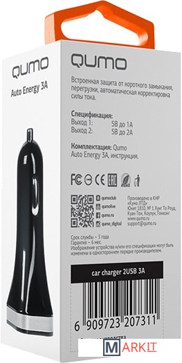 Markit » Зарядные устройства » Автомобильное зарядное QUMO Auto Energy 3A