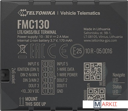 FMC130 - это небольшое устройство серии продвинутых трекеров с сетевым покрытием 4G (LTE Cat 1), с возможностью резервного использования 3G (UMTS) и 2G (GSM) сетей. Устройство оснащено встроенными антеннами GNSS и LTE, настраиваемыми цифровыми/цифровыми/аналоговыми/отрицательными и импульсными входами, тремя цифровыми выходами, Bluetooth модулем и резервным аккумулятором. FMC130 разработан на существующей платформе Teltonika FMB, поэтому он сохраняет все функциональные возможности FMB130 и опирается на них с использованием передовых технологий. Для начала, FMC130 имеет отрицательный вход, что позволяет сэкономить драгоценное время интеграции при подключении аксессуаров, таких как датчик дверей автомобиля, кнопка аварийной сигнализации, обнаружение ремней безопасности и других подобных датчиков или аксессуаров. Кроме того, в устройство встроена возможность подключения импульсного входа для точного считывания данных расходомера топлива. Импульсный мониторинг расхода топлива гораздо точнее, чем датчики расхода топлива другого типа, что делает FMC130 идеальным решением для машин с высоким расходом топлива, таких как краны, строительная техника, карьерные машины, сельхозтехника. Программируемые входы, 3 различных настраиваемых сценария цифровых выходов (иммобилайзер, зуммер, сигнальные лампы, дверной замок и другие сценарии) вместе с 4G (LTE Cat 1) совместимостью, в том числе резервной совместимостью с 3G (UMTS) и 2G (GSM), делают это устройство одним из самых гибких в мире.
