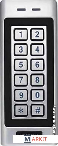 Встроенный автономный контроллер с памятью до 1000 карт. Встроенный считыватель совместим с картами, брелоками и другими идентификаторами форматов Em-marin.