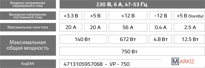 | Макс. ток по линии +12V | 56 А |