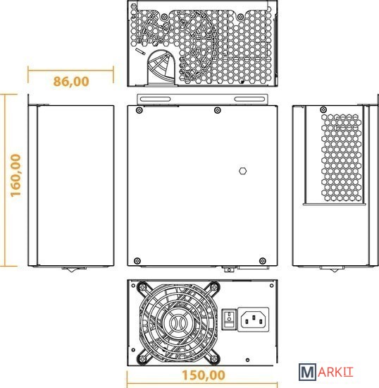 Размер вентилятора блока питания 80 мм  (двойной шарикоподшипник)