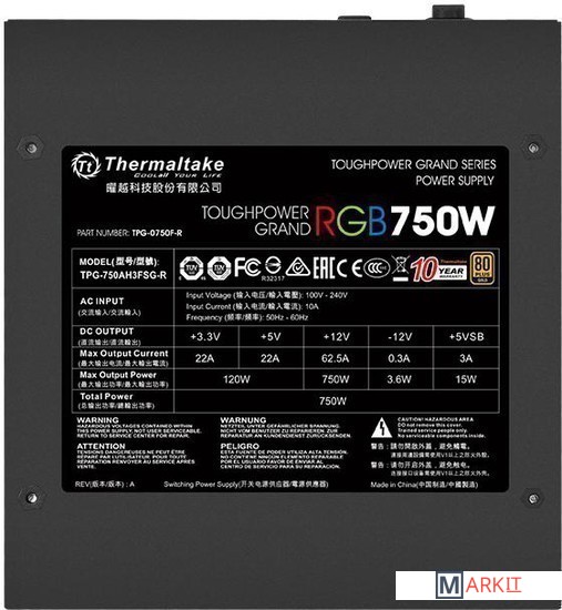 Markit » Блоки питания » Блок питания Thermaltake Toughpower Grand RGB 750W Gold Full Modular [TPG-0750F-R]