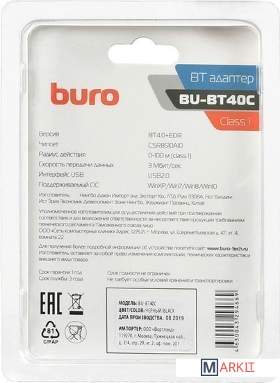 Markit » Беспроводные адаптеры » Bluetooth адаптер Buro BU-BT40С