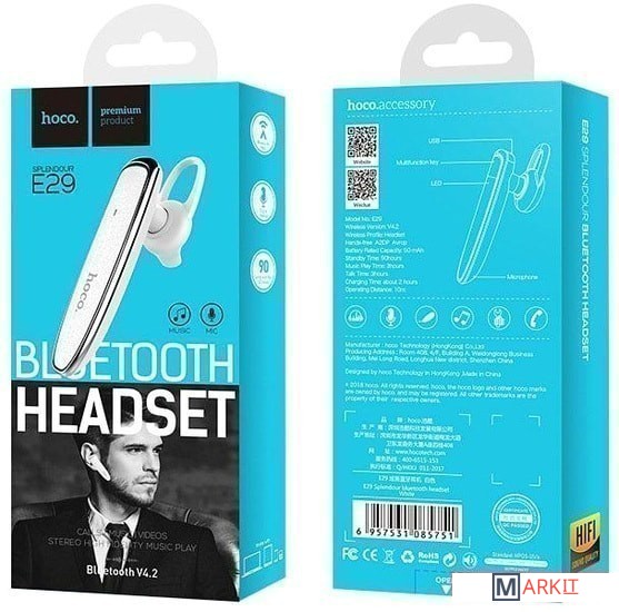 Markit » Bluetooth-гарнитуры » Bluetooth гарнитура Hoco E29 (белый)