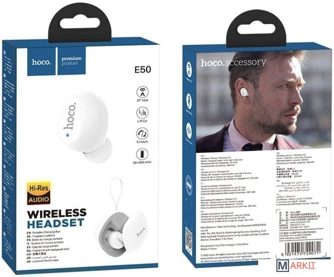 Markit » Bluetooth-гарнитуры » Bluetooth гарнитура Hoco E50 (белый)