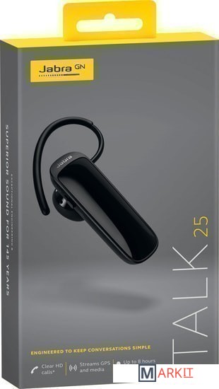 Гарнитура Jabra Talk 25, Кабель микро-USB, 3 комплекта гелевых ушных вкладышей EarGel, 2 наушных крепления EarHook, Краткое руководство пользователя |