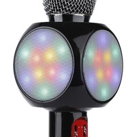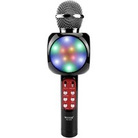 Ручной микрофон с аудио модулем и LED подсветкой, встроенный динамик.Модель WS-1816 оснащена беспроводным модулем Bluetooth, FM радиоприемником, слотом USB, TF и microUSB для чтения/трансляции музыкальных файлов.