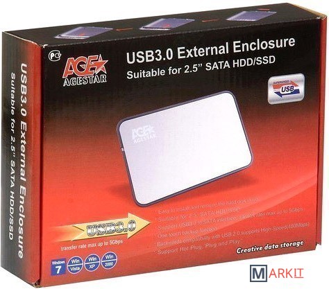Markit » Боксы для накопителей » Бокс для накопителей 2.5" AgeStar 3UB2A8 Black