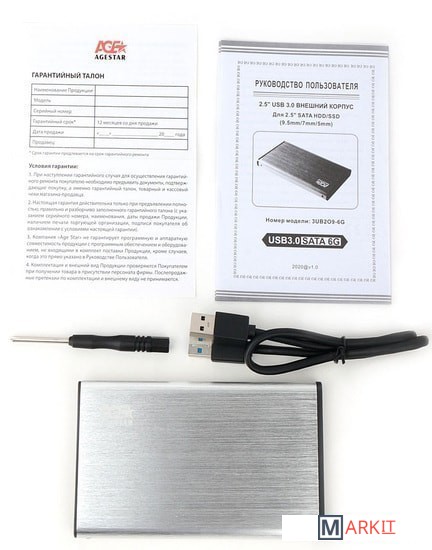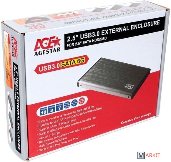Markit » Боксы для накопителей » Бокс для накопителей 2.5" AgeStar 3UB2O9-6G (серебристый)