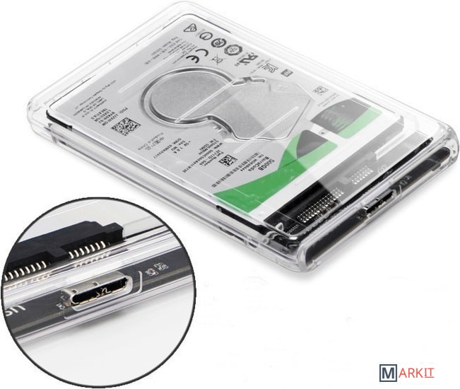Markit » Боксы для накопителей » Бокс для накопителей 2.5" USBTOP SATA – MiniUSB – USB3.0 (пластик, прозрачный)