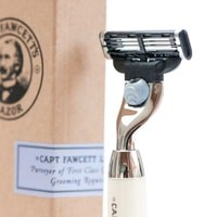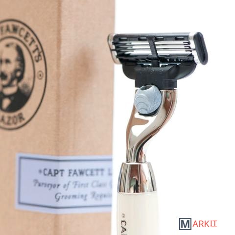 Неверятно удобная безопасная бритва Captain Fawcett. Сочетание внешнего вида в стиле эпохи короля Эдуарда и современных разработок в бритвенных станках. Эта бритва обеспечит великолепное бритье. Изготавливается вручную. Ручка из слоновой кости с хромированным воротником и основанием.Длина: 130 мм, Длина рукоятки: 87 мм, Вес: 47 граммКассеты: Gillette Mach 3 (лезвие в комплекте)