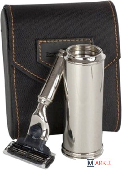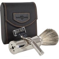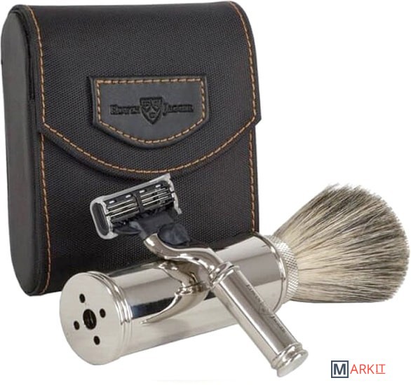 Бритвенный набор для путешествий или деловых поездок от Edwin Jagger.В набор входит станок с системой Mach3 из хромированной латуни, а так же помазок из натурального ворса барсука, типа pure badger. Бритвенный станок и помазок упакованы в красивый и удобный чехол из высококачественного нейлона.Красивый и роскошный комплект!