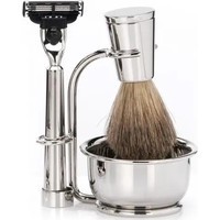 Набор из коллекции VESPUCCI с помазком Tasso Tec / Best Badger из натурального барсучьего волоса, станок Gillette Mach 3 Turbо и чаша. Материал — отполированный никель