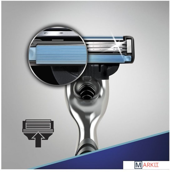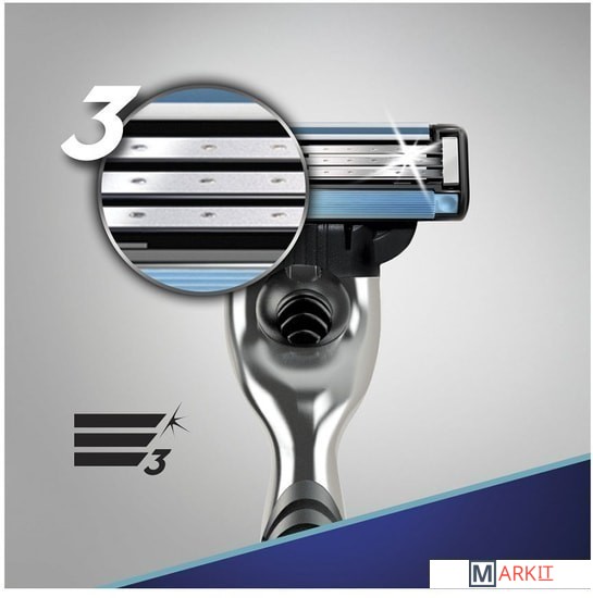 Gillette Mach3 - это бритвенная система, оснащенная тремя последовательно расположенными лезвиями на разных уровнях, чтобы можно было брить чище лишь одним движением.Бритвенный станок оснащен улучшенной смазывающей полоской-индикатором, которая помогает узнать о необходимости смены кассеты, чтобы обеспечить наилучший эффект.