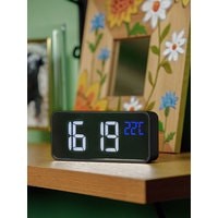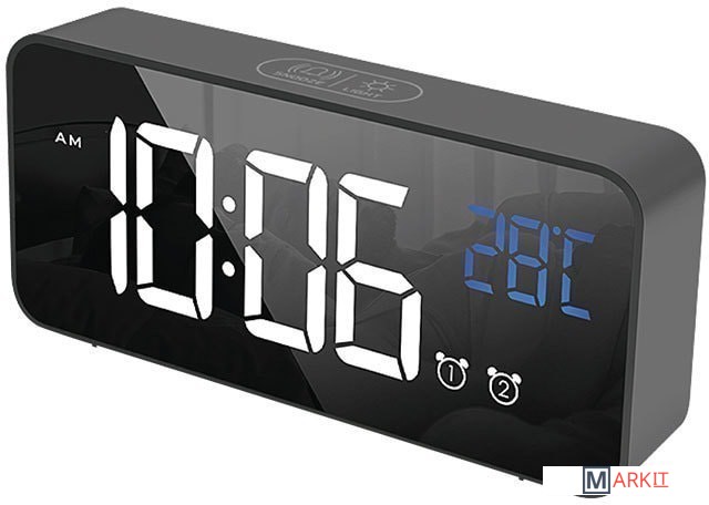 Особенности:— Современный дизайн— Возможность работы от аккумулятора/USB/сети— Яркие, заметные издали цифры— Регулируемая яркость— Запоминание настроек при отключении питания— Качественный приятный звук будильника— Встроенный термометр