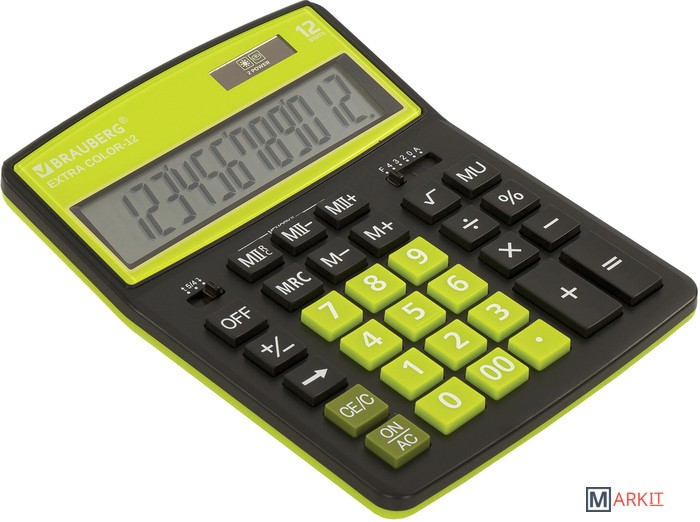 Markit » Калькуляторы » Бухгалтерский калькулятор BRAUBERG Extra Color-12-BKLG 250477 (черный/салатовый)