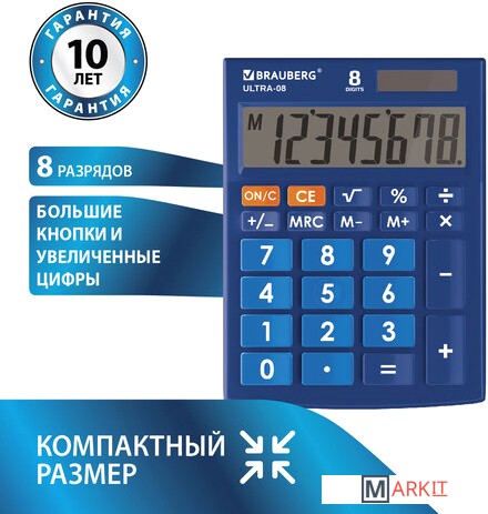 Markit » Калькуляторы » Бухгалтерский калькулятор BRAUBERG Ultra-08-BU 250508 (синий)