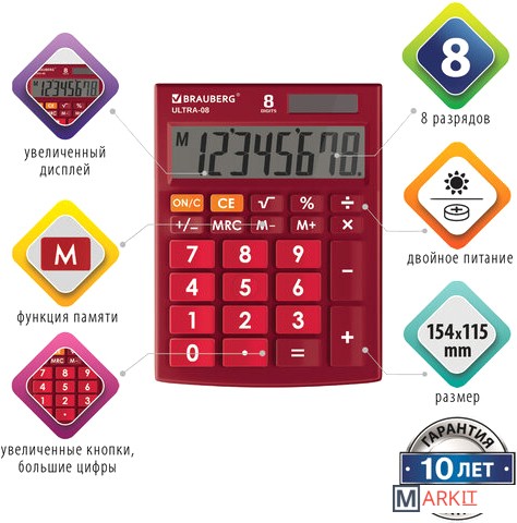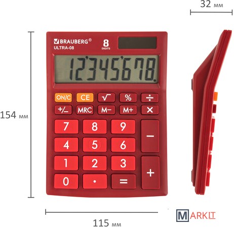 Markit » Калькуляторы » Бухгалтерский калькулятор BRAUBERG Ultra-08-WR 250510 (бордовый)