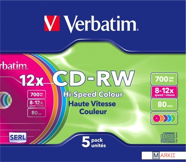 Markit » Оптические диски » CD-RW диск Verbatim 700Mb 12x 43167 (5 шт.)