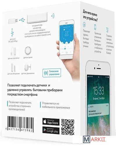 Модуль управления - это компактное устройство, предназначенное для удаленного управления кондиционером или конвектором cо смартфона через приложение или голосом. Вы можете включить кондиционер по дороге с работы, а придя домой уже ощущать комфортную температуру.Модуль подключается в USB-разъём на корпусе бытового прибора и позволяет управлять всеми настройками, функциями и режимами устройства, как и с обычного пульта управления.Благодаря поддержке подключения внешних датчиков безопасности модуль управления может быть использован как база системы сигнализации. Своевременные push- и sms- уведомления о срабатывании датчиков повысят безопасность вашего дома и обеспечат комфорт.Создавайте удобные сценарии в связке с датчиками безопасности и другими устройствами rubetek: например, дом встретит вас уютом, заранее подогрев полы в ванной комнате и включив кондиционер в спальне.Габариты 50×18×7,5 мм