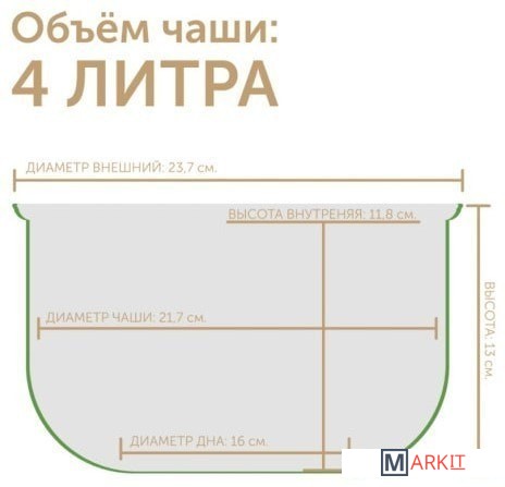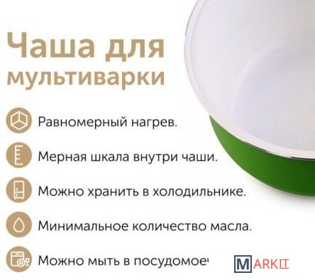 Чаша MARUCHI RW-FZ47-к с керамическим покрытием. Японский бренд производимый в Китае. Позволяет готовить пищу с использованием минимального количества масла и жиров, что сохраняет естественный вкус продуктов. Структура чаши способствует значительному сокращению времени приготовления и энергозатрат. Это достигается за счет включения в сплав алюминия, который повышает теплопроводные свойства чаши, то есть ее способность быстро и эффективно передавать энергию от нагревательного элемента к пище. Готовые блюда можно хранить в холодильнике прямо в чаше. Емкость легко и удобно моется, в том числе в посудомоечной машине.