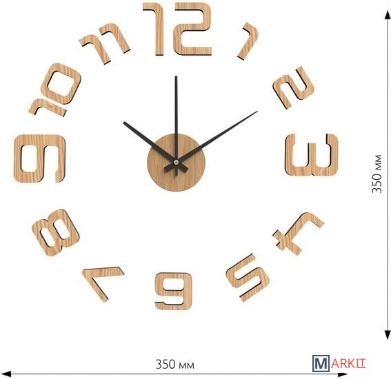 Настенные часы Kleber на клейкой ленте, 35 см, светлое дерево KLE-CL208 с основой под механизм и цифрами цвета светлого дерева. Цифры 3,6,9 и 12 чуть больше остальных. Наклеить их можно на любые гладкие предметы интерьера. Часы крепятся к стене без сверления