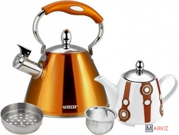 чайник для подогрева воды, чайник для заваривания чая и ситечко