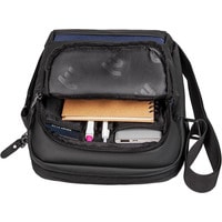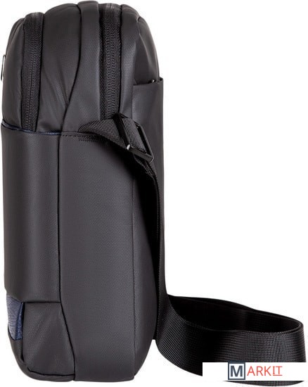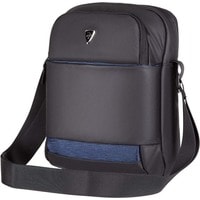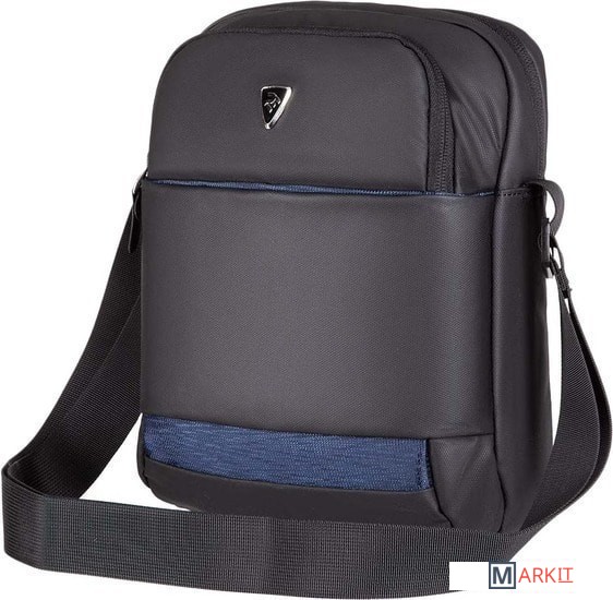Компактная городская сумка предназначена для ежедневного использования. Изготовлена из полиуретана черного цвета с декоративными элементами темно-синего цвета. Комплектуется регулируемым плечевым ремнем.