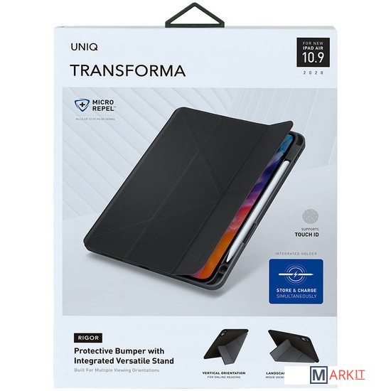 Uniq Transforma Rigor Anti-microbial - практичный защитный чехол-подставка для планшета iPad Air 10.9" (2020) со специальным отсеком для стилуса